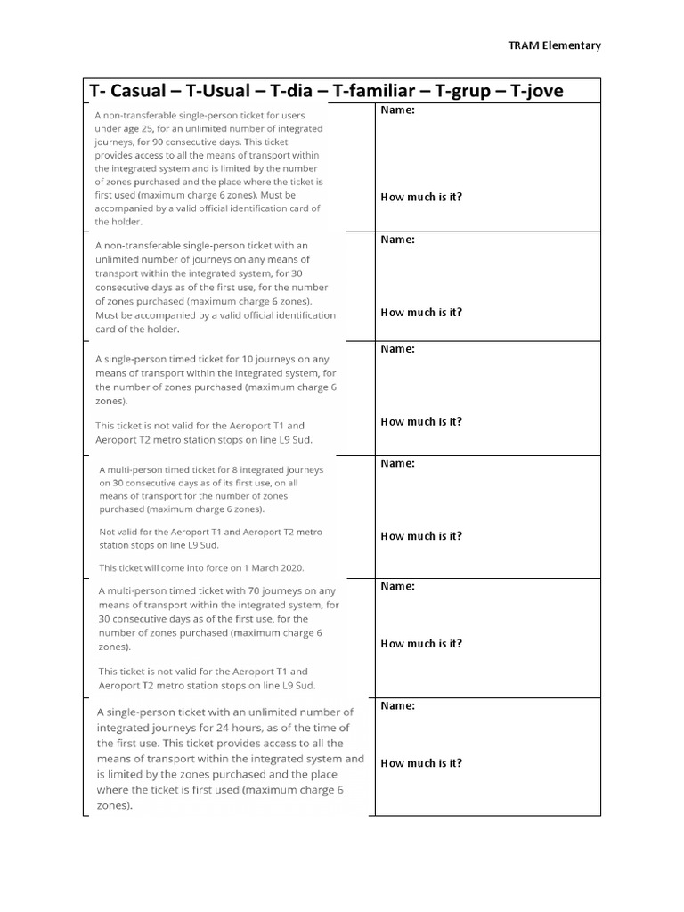 Tram Elementary Ticket Types PDF