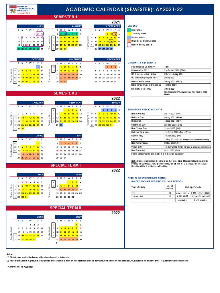 Ntu Academic Calendar Ay2021 22 (Semester) PDF Observances Public