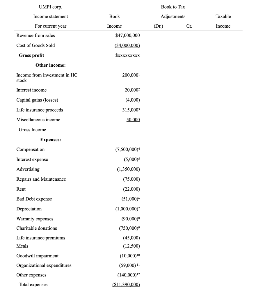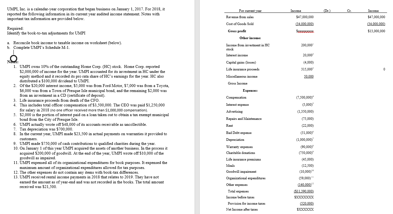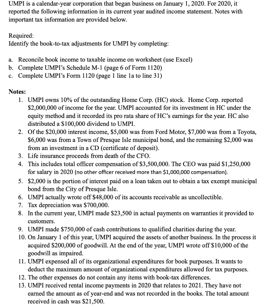 Solved UMPI, Inc. is a calendaryear corporation that began