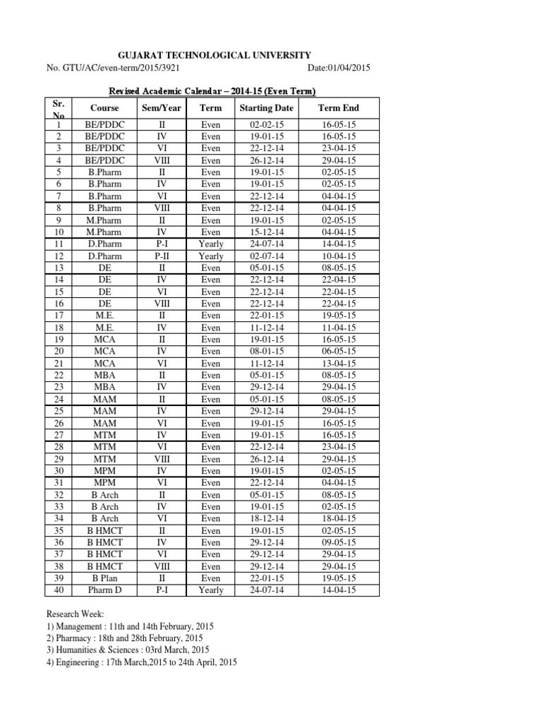 Academic Calender 14 15 Even PDF Vocational Education Behavior