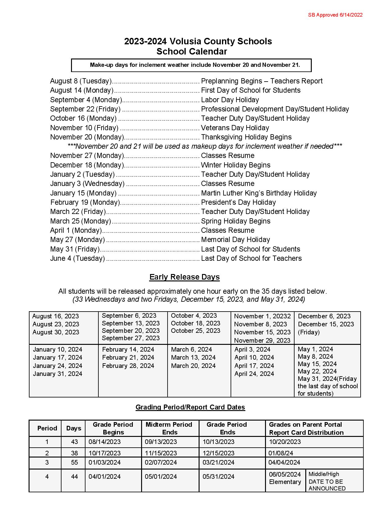 Volusia County School Calendar 20222023 (revised) Volusia County Moms