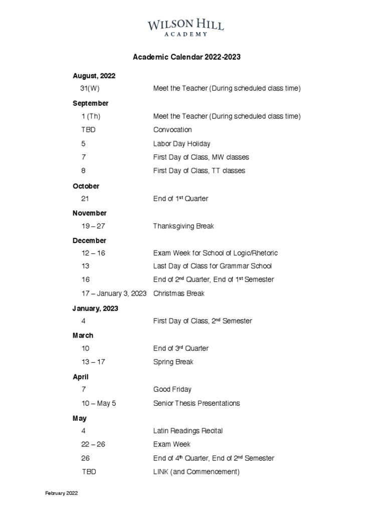 WHA Calendar