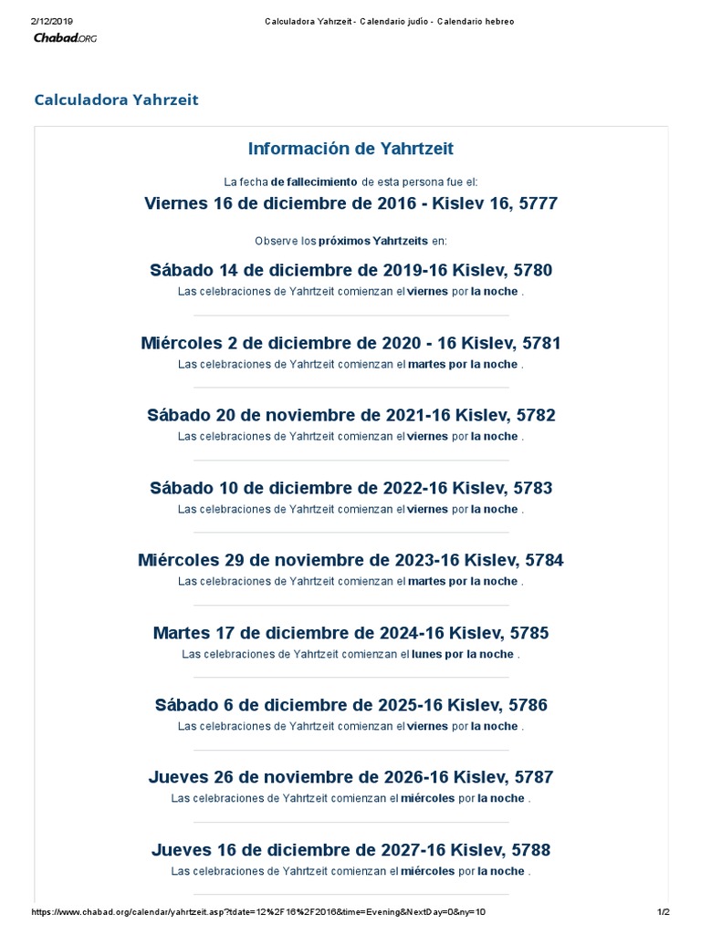 Calculadora Yahrzeit Calendario Judío Calendario Hebreo PDF