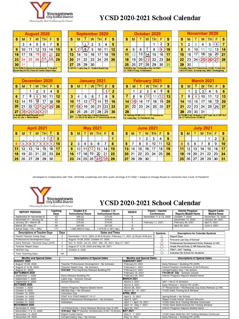 YCSD 20202021 School Calendar v1 PDF